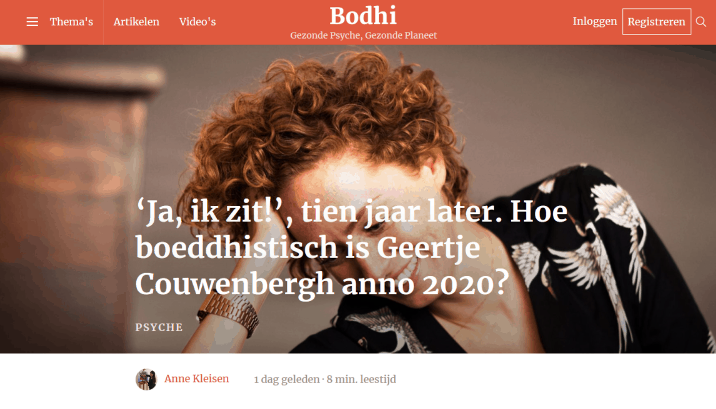 interview met Bodhi Tien jaar geleden stond ik in ‘Ja, ik zit’, een boek met jonge boeddhisten. Toen ik werd benaderd voor een update zei ik Anne Kleisen al dat de titel van dat interview ‘Nee, ik zit niet meer’ zou worden. Lees hier wat er is gebeurd. Door Sylvia Faasse|2020-07-24T09:56:56+02:00juli 24th, 2020|0 Reacties Gerelateerde berichten 20 Beste Liefdesadviezen van Lieve Dot – Happinez bijlage Mini workshop: obsessies Heilig Gelijk – te gast in Rene Pluijm’s podcast ‘Lieve Corona’, een gratis schrijfspecial NIEUW! Online Cursus Vijf Uur Schrijfvuur Geef een reactie Reactie annulerenJe moet ingelogd zijn om een reactie te geven.