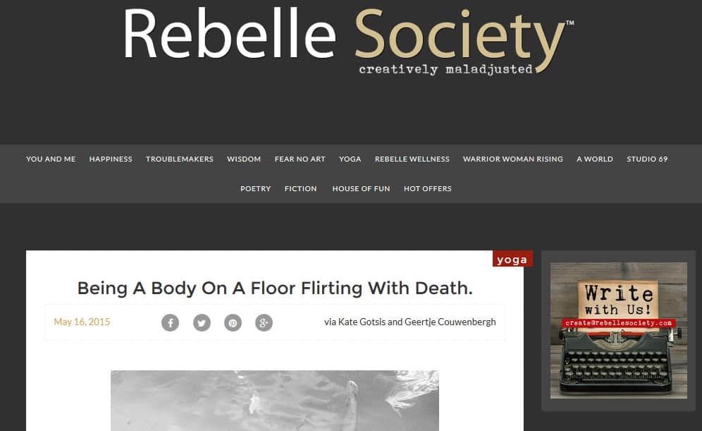 Savasana: Life As Asana (Part Two) Me and my friend Kate are writers and friends on different continents. Here’s part two of Life As Asana on Rebelle Society. Door Sylvia Faasse|2024-07-08T20:00:22+02:00juli 13th, 2015|0 Reacties Gerelateerde berichten Altijd Etty ‘Lieve Corona’, een gratis schrijfspecial Het Nieuwe Normaal free Audio Essay interview over #VOTEFORLOVE Geef een reactie Reactie annulerenJe moet ingelogd zijn om een reactie te geven.